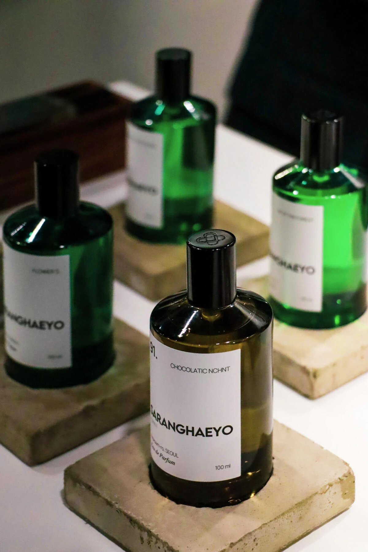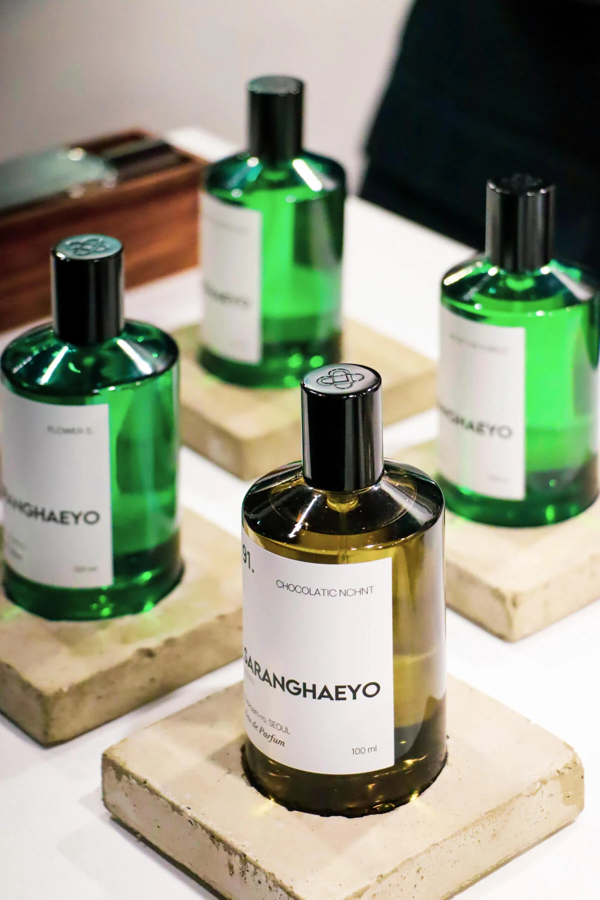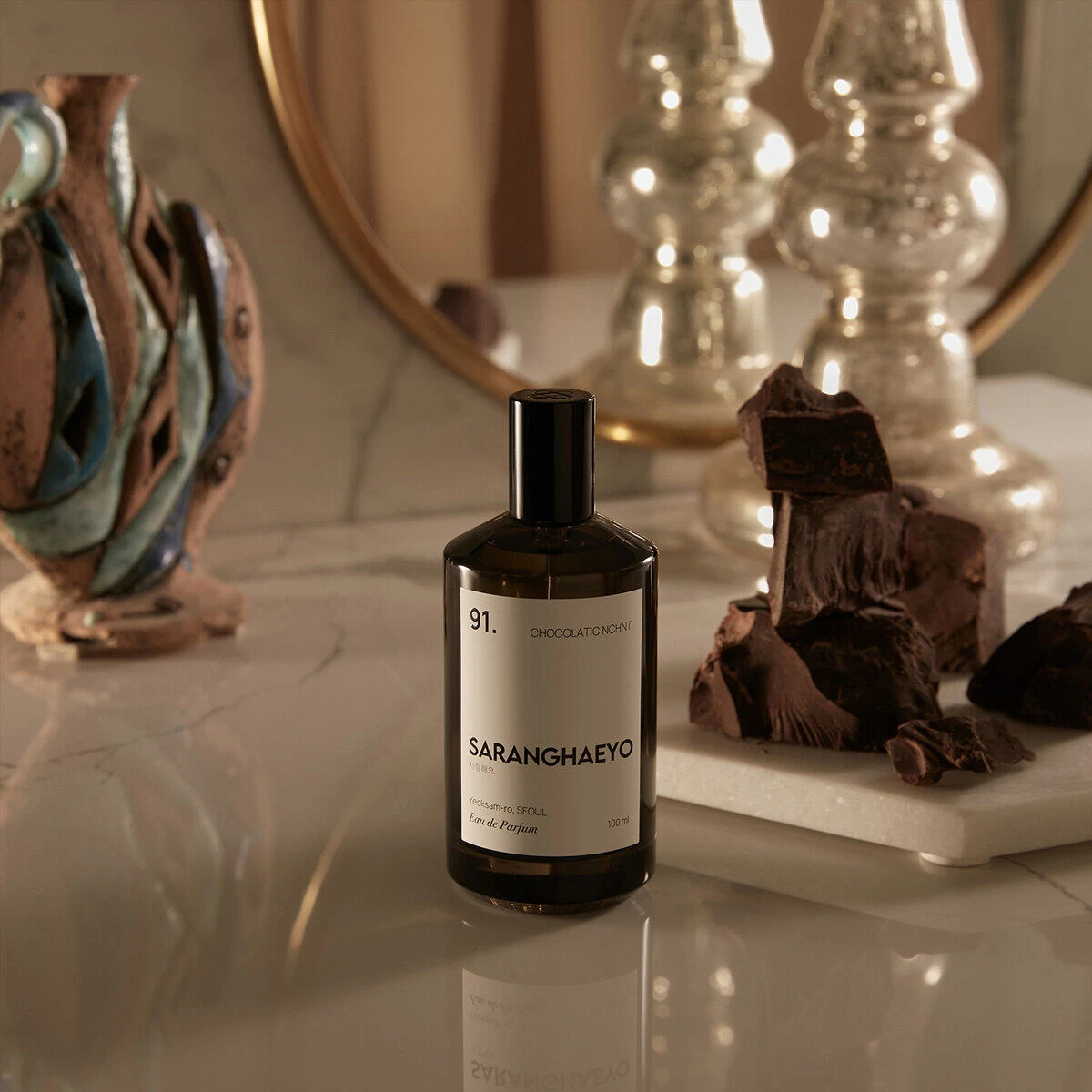91. Chocolatic Nchnt by SARANGHAEYO is a fruity floral fragrance for men and women, launched in 2020. Its olfactory pyramid unfolds with top notes of peach, blackcurrant, orange, lemon, and apple; a heart of lavender, jasmine, ylang-ylang, pine, and rose; and a base of amber, cedar, musk, vanilla, sandalwood, and vetiver.