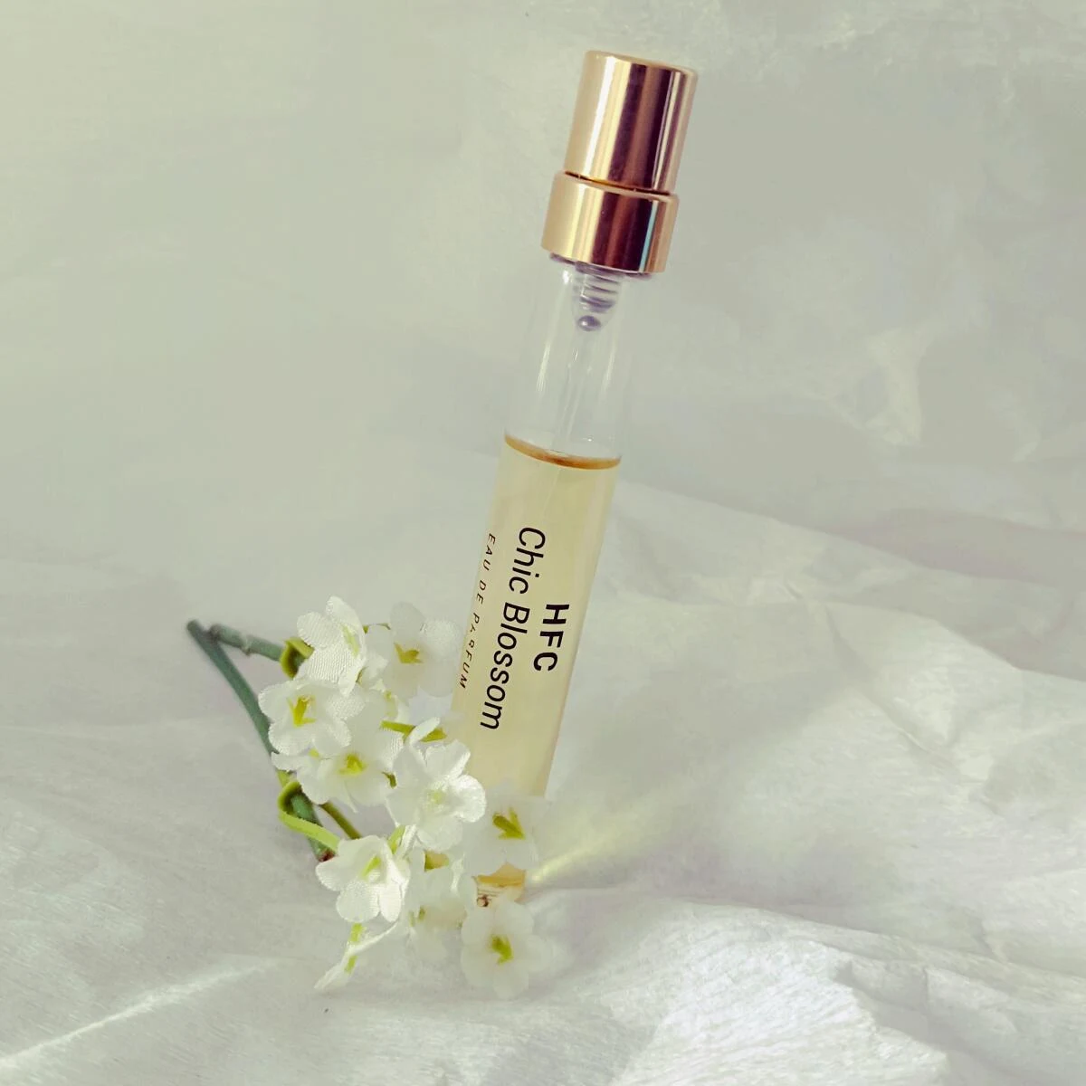 Chic Blossom by Haute Fragrance Company HFC is a women's fragrance from the floral family, launched in 2017. The nose behind this composition is Vincent Ricord. The top notes are Indian jasmine, Italian mandarin, and Italian lemon; the heart notes are sambac jasmine and amber; and the base notes are musk, benzoin, and tobacco.
