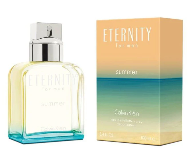 Calvin Klein Eternity for Men Summer 2015 is an aromatic fougère fragrance for men. Launched in 2015, this composition features a marine freshness, grapefruit, and pink pepper in its top notes. The heart reveals juniper berries, fig leaves, and cypress, while the base settles with driftwood, musk, and amber.