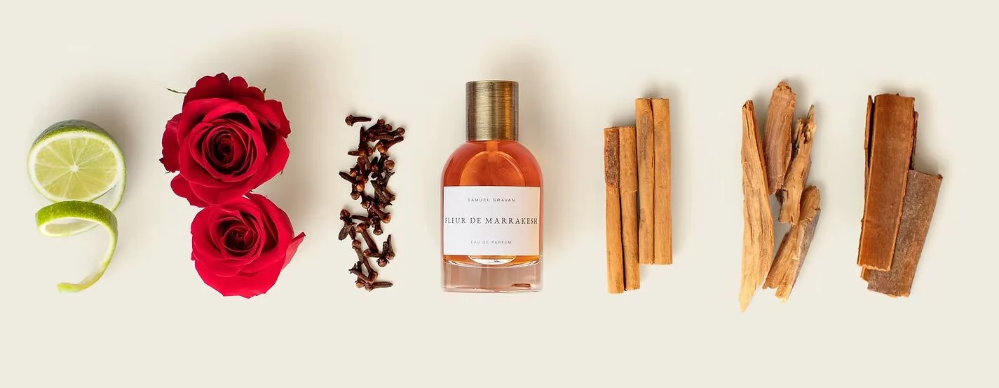 Fleur de Marrakesh by Samuel Gravan is a floral fragrance for men and women. Launched in 2020, this composition features the nose of its creator, Samuel Gravan. The top notes unfold a citrusy and exotic effervescence thanks to bitter orange, neroli, bergamot, and yuzu. The heart reveals a spicy and floral complexity with ravensara, sambac jasmine, cardamom, cloves, rose, bark, and cinnamon. The base settles on a warm and woody foundation formed by vetiver, Moroccan cedar, sandalwood, patchouli, and white cuaba flower, also known as amyris wood.