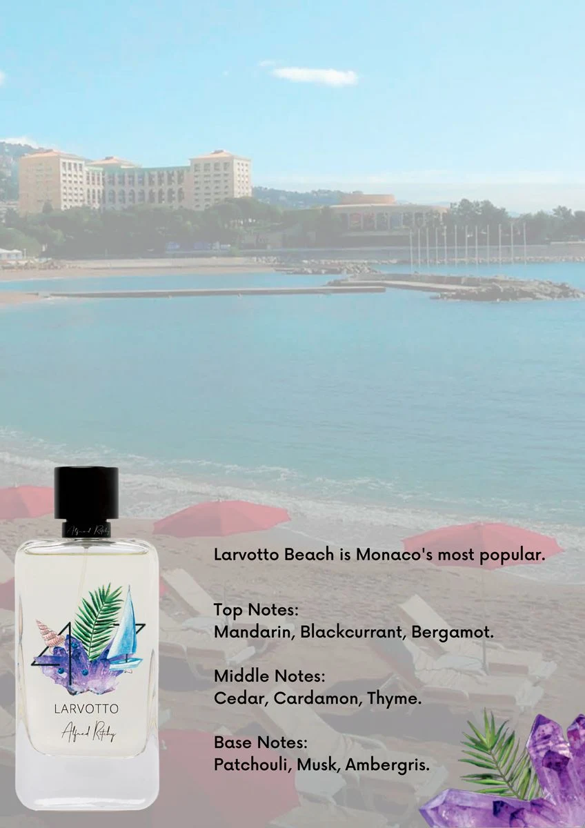 Larvotto by Alfred Ritchy is an olfactive fragrance for men and women. Launched in 2023, this composition features mandarin, bergamot, and black currant in the top notes; cedar, thyme, and cardamom in the heart; and musk, ambergris, and patchouli in the base.