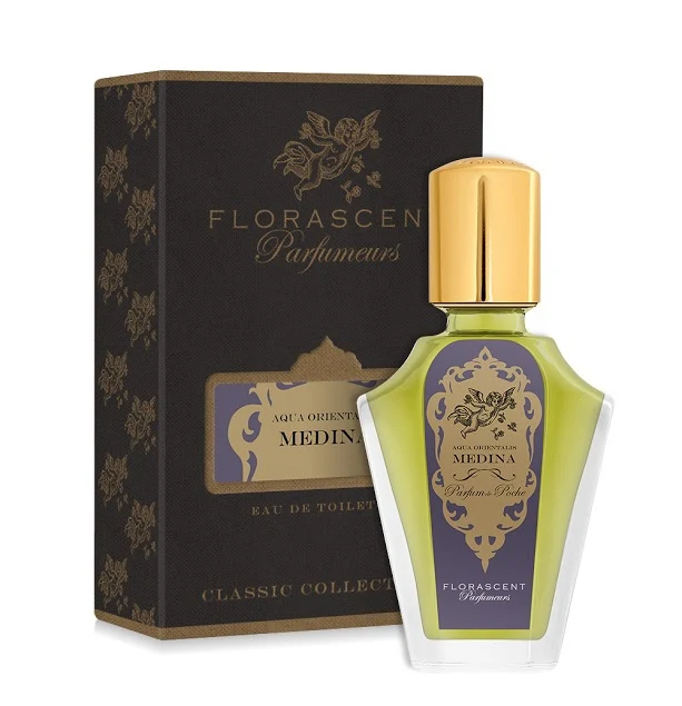 Medina by Florascent is a floral fragrance for men and women. The top notes are bergamot and lemon (sour lime); the heart notes are hyacinth, jasmine, and saffron; the base notes are vetiver, patchouli, and lily root.