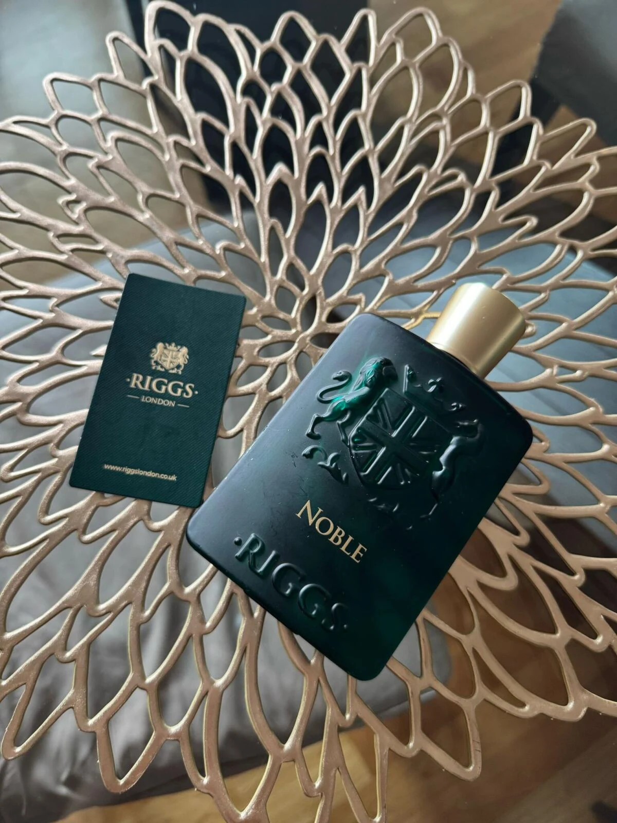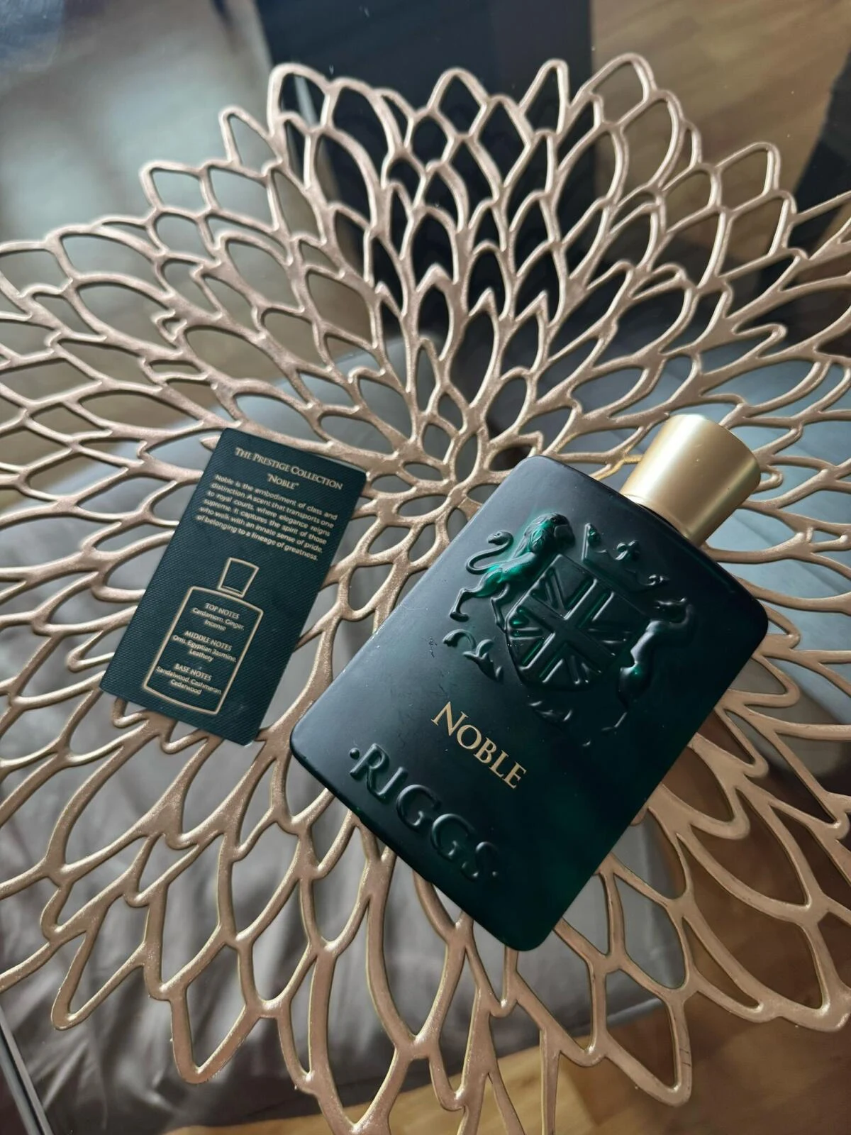 Noble by Riggs is an oriental woody fragrance for men and women. This creation, launched in 2024, unfolds an olfactory pyramid where the top notes are cardamom, ginger, and lemon (sour lime); the heart reveals iris root, violet, and incense; and the base settles on cashmere, sandalwood, and white cuaba flower (Amyris wood).