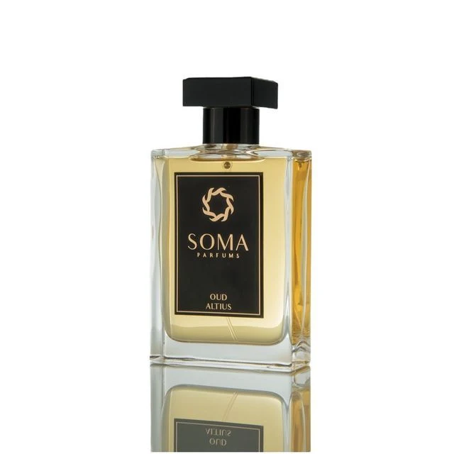 Oud Altius by Soma Parfums is a spicy aromatic fragrance for men and women, created by perfumer Olivier Cresp and launched in 2022. Its olfactory pyramid unfolds with spicy, raspberry, cinnamon, and cardamomo notes in the top; frankincense, rose, saffron, amber, and iris in the heart; and oud wood, sandalwood, musk, leather, and vanilla in the base.