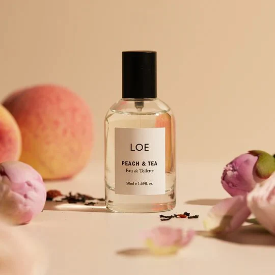Peach & Tea by LOE is a fruity floral fragrance for men and women, launched in 2023. The top notes are peach, plum, yuzu, and green leaves; the heart notes are black tea, peony, peach blossom, raspberry, and osmanthus; and the base notes are white musk, amber, and heliotrope.