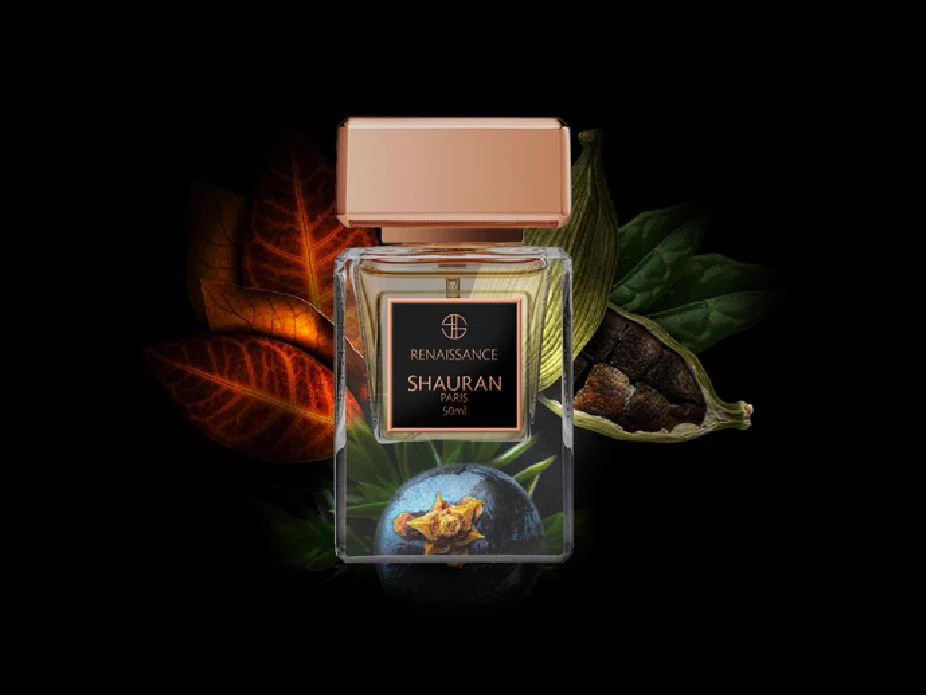 Renaissance by Shauran is a woody-spicy fragrance for men and women. Launched in 2021, this composition reveals cardamom, pink pepper, white pepper, and juniper in the top notes. The heart unfolds with leather, oud wood, iris root, and rose, while the base notes complete the olfactory pyramid with tobacco, white cuaba flower, vanilla, patchouli, and cedar.