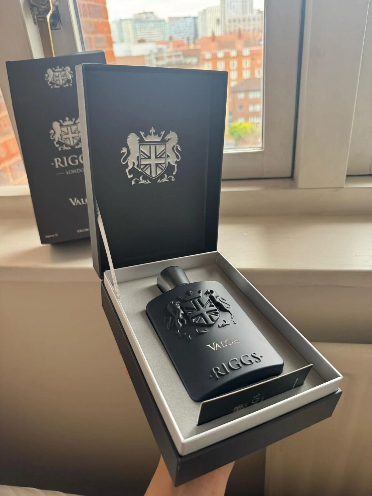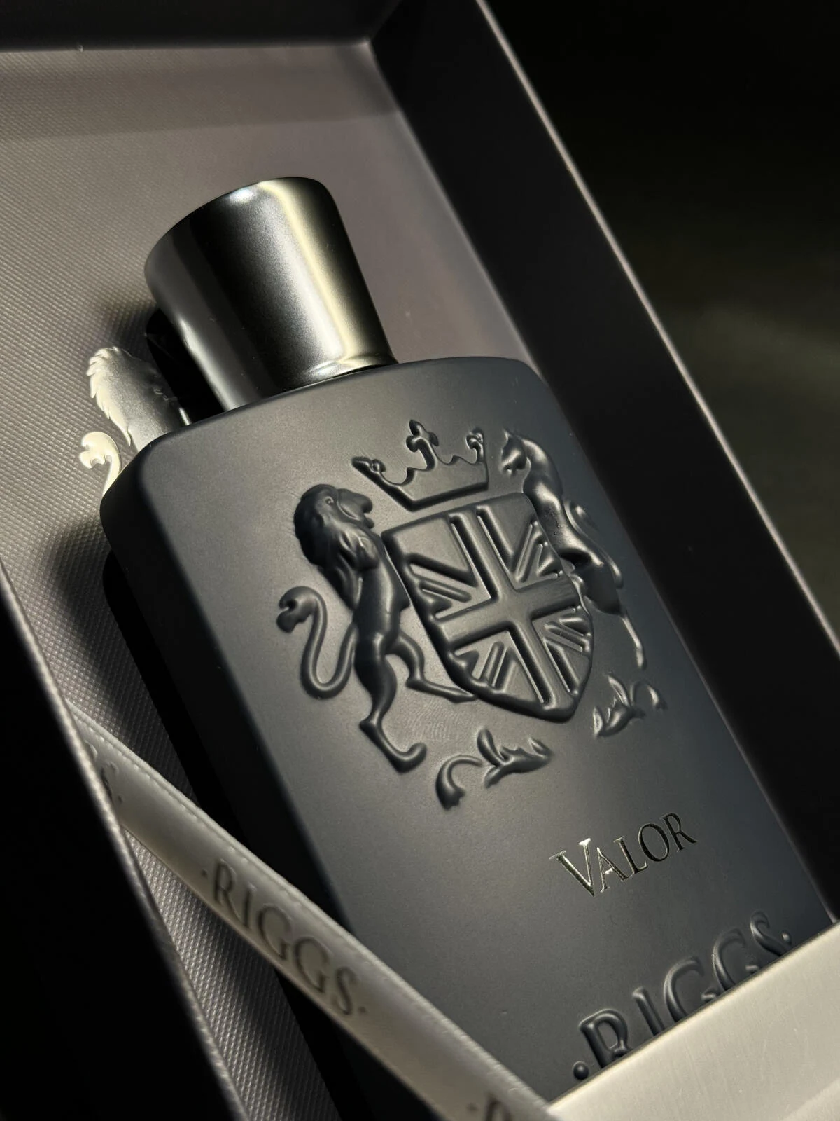 Riggs Valor is an oriental floral fragrance for men and women. This creation, launched in 2024, unfolds an olfactory pyramid where the top notes combine chestnut, pink pepper, and clove. The heart of the composition reveals benzoin, orange blossom, and smoke, while the base notes settle with vanilla, guaiac wood, and cashmere.